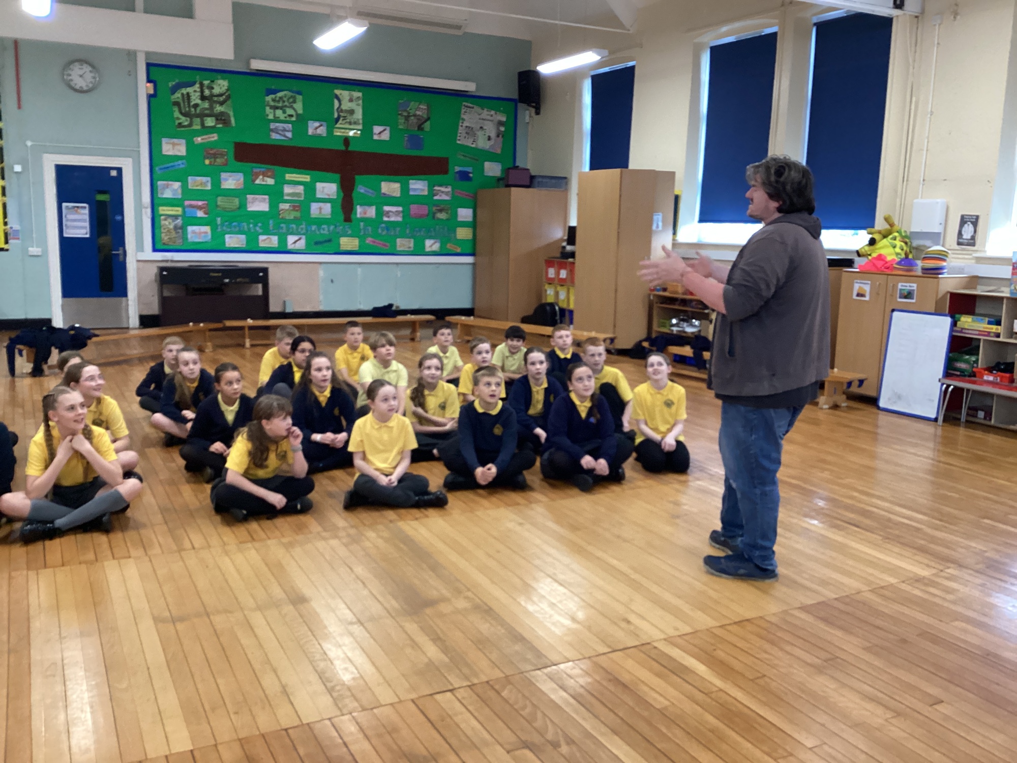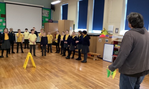 Mark from Konflux Theatre was in school today working with our Year 6 class to create a 'Play in a Day'.