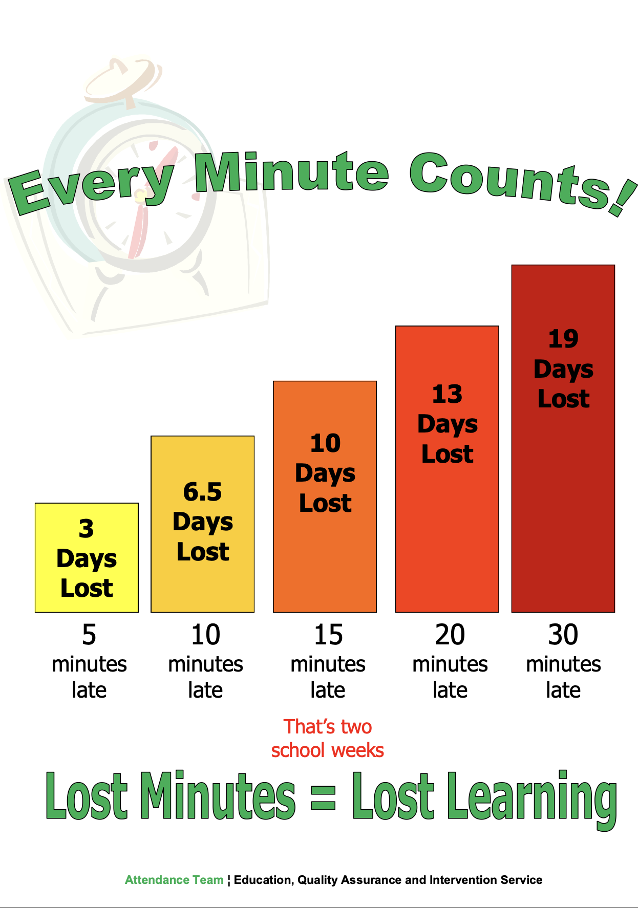 School attendance is a parent and student responsibility, and good attendance habits start at an early age.  Making sure that your child goes to school regularly and on time is extremely important.  You can find some attendance tips below and information on the importance of punctuality.