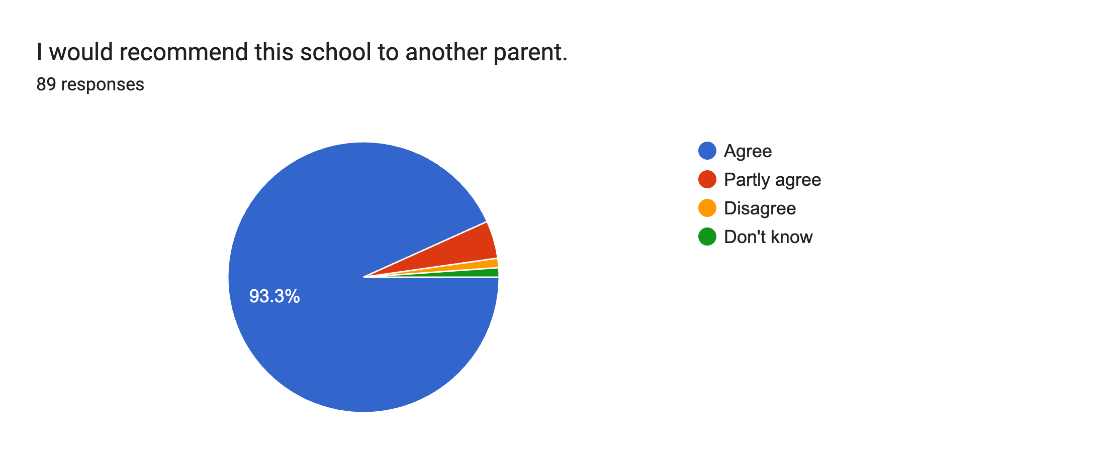 | I would recommend this school to another parent. | 93% | 5% | 1% |